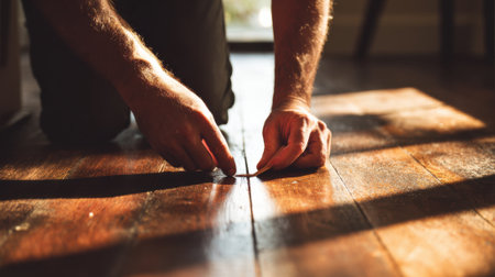 Close up of a hands working with precision on reflective surface. Photo with a subtle grain, soft focus blur