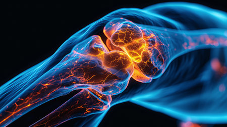 Anatomy of a Painful Knee Joint Detailed Close-Up with Inflammation in Yellow and Orange