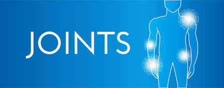 Medical poster, human body silhouette with a skeleton inside. Joint pain, spine, knee, wrist, elbow, foot, shoulder. Arthritis, inflammation, fracture cartilage 3D illustration 3D render
