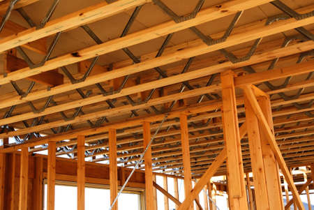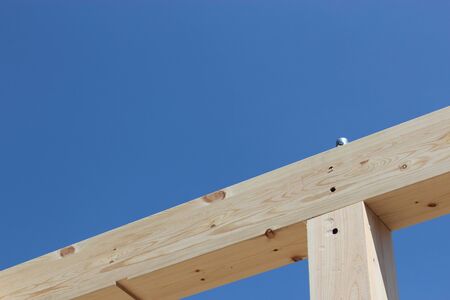 Truss, joist, beam new house under construction exterior framing with timber framing