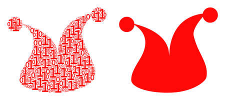 Joker hat collage icon of one and zero digits in random sizes. Vector digit symbols are united into joker hat illustration design concept.