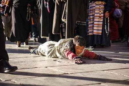 Boy worshiping at the Jokhang Temple
