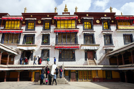 LHASA, CHINA - CIRCA MAY 2017 People in Drepung Monastery