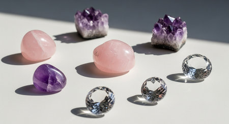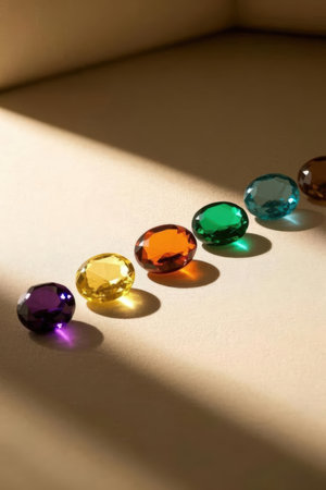 Jewel-toned stones in artistic composition, perfect for backgrounds and luxury branding