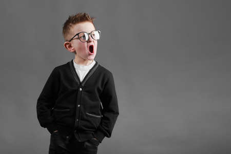 photo of young emotional boy on bright background