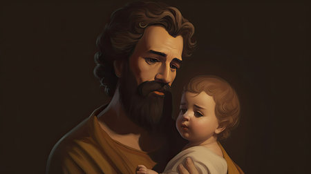 Jesus Christ with baby Jesusand Joseph on a dark background
