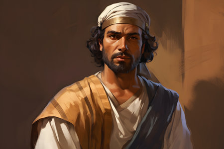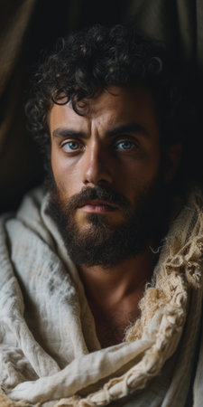 Portrait of an old Patriarch praying in the temple. Biblical character.