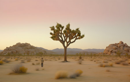 Detailed Rendering of Joshua Tree Amidst Vibrant Desert Landscape