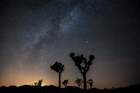Joshua Trees at night with clean and starry sky. Joshua Tree National Park, California