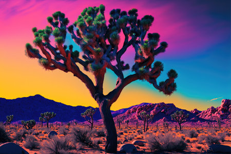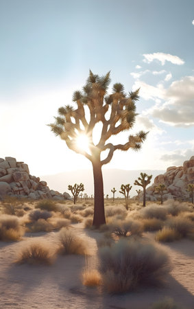 Detailed Rendering of Joshua Tree Amidst Vibrant Desert Landscape