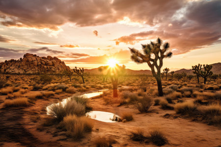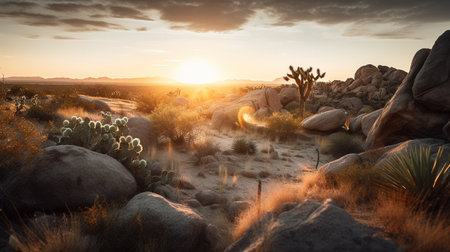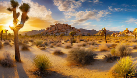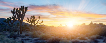 joshua tree national park usa panoramic shot sunset in the desert gold desert