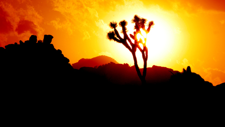 Sunset and silhouette of joshua tree, Joshua Tree National Park, California, USA