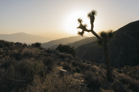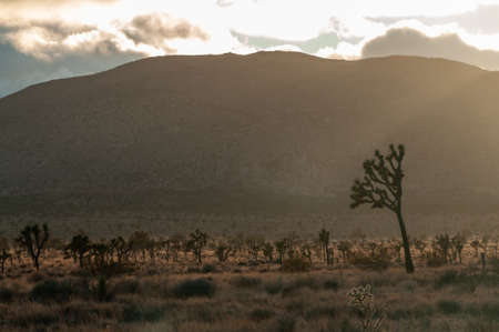 Low Angle of Late Afternoon Sun Through Joshua Tree in desert