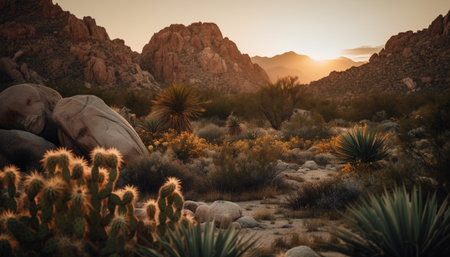 a vivid sunset illuminating a desert cactus, created with generative ai