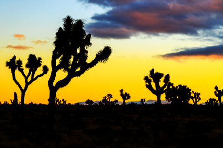 Joshua Tree National Park at sunset, California, USA. Yucca brevifolia