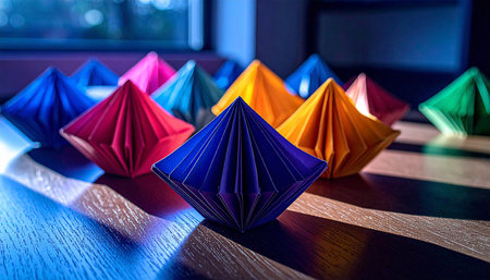 Colorful layers of origami paper arranged in a vibrant display for craft enthusiasts