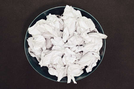 On a wooden desk, a crumpled ball of paper sits as a testament to a discarded idea.