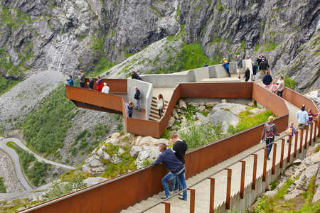 Norwegian mountain tourist landscape. Trollstigen viewpoint. Travel Norway. Horizontal