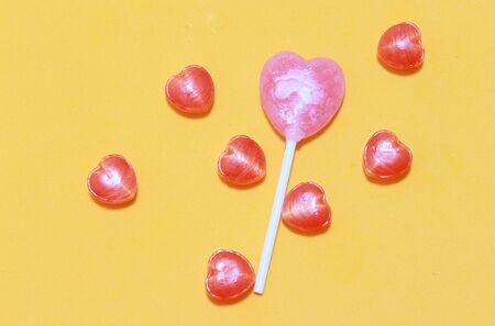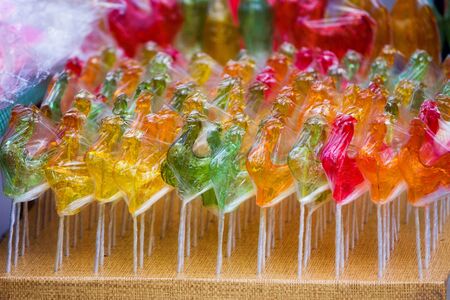 Photo of colorful yellow, pink, green, orange lollipops assorted