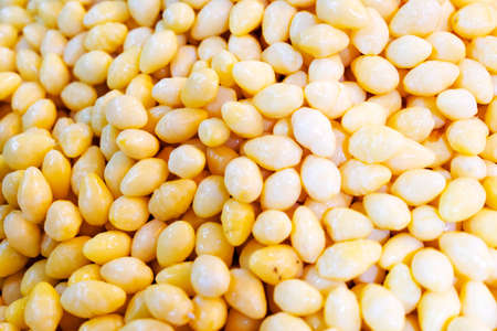 Macro close up of Mexican hot / spicy snack broad beans with chile, selective focus