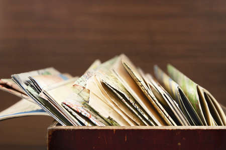 Vintage background with old letters, paper and photos. Retro letters and envelopes.