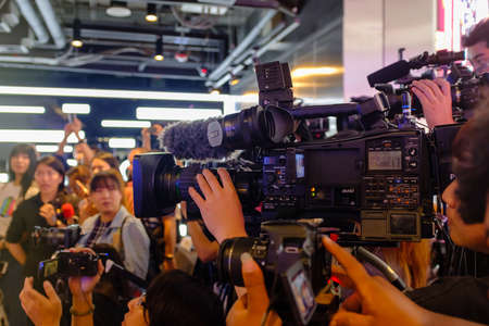 Bangkok, Thailand -0 2 APR 2018: Lot of video camera operators and reporters are working