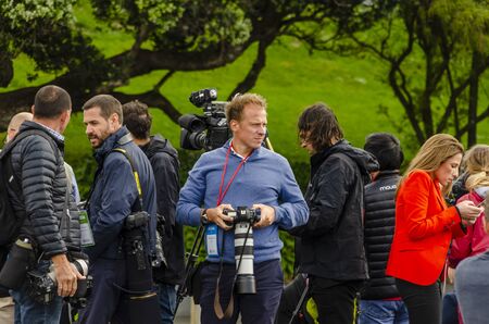 Wellington, New Zealand - October 28, 2018: Press prepares ahead of a royal visit to the Wellington War Memorial in New Zealand.