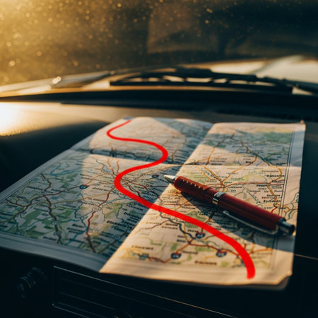 A miniature car on a map.