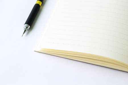 Closeup pencil on opened notebook, vintage color
