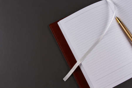 Notebook-diary with a ballpoint pen on a gray background