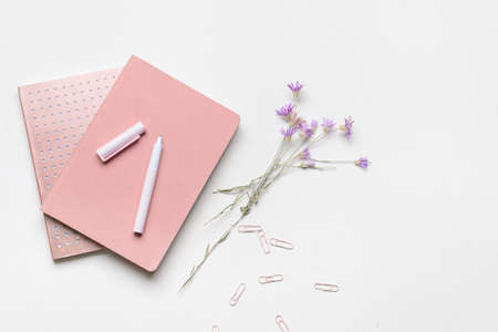 Notebooks with pen on light background