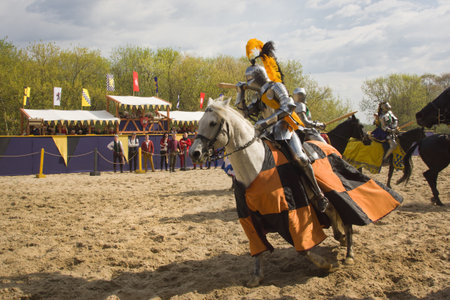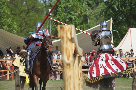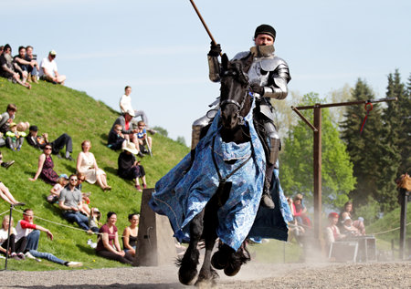 Warsaw, Poland - May 03, 2012 - Knights jousting at the International Festival of historical Reenactment of the Middle Ages - Battle of the Nations.