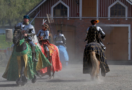 Sundby Lolland, Denmark - August 21, 2017 - The medieval knights tournament in The Middle Ages Center, the experimental living history museum.