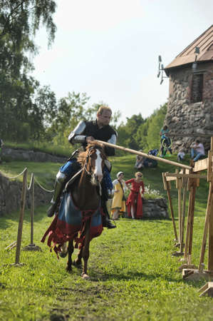 Knight on horse tournaments historic festival, fortress Corell, Priozersk, Russia