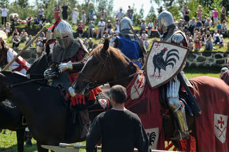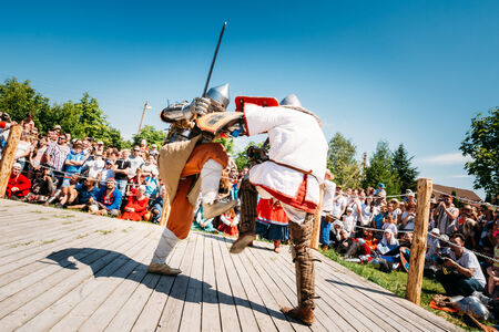 MINSK, BELARUS - JULY 19, 2014: Historical restoration of knightly fights on festival of medieval culture