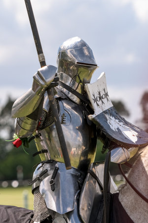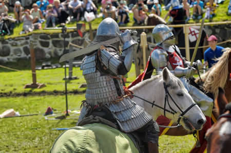 CHORZOW,POLAND, JUNE 9: Medieval knight on horseback during a IV Convention of Christian Knighthood on June 9, 2013, in Chorzow