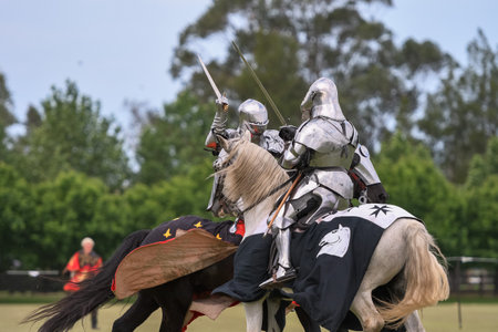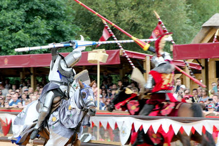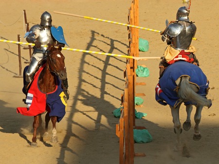 Knight jousting. Medieval knights during a jousting tournament. Knights competition.