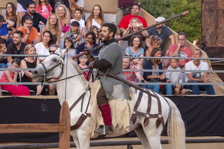 SILVES, PORTUGAL - August 13th, 2017 : Medieval warrior with horse in Medieval fair event.