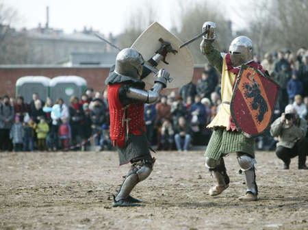 Knights Sword Fight at the Medieval Fair in Uniejow. August 06 2011 Poland