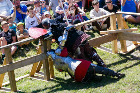 06.04.2015 Lorelay Germany - Medieval Knight games knights fighting tournament riding on horse