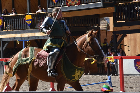 A knight jousting at a festival.