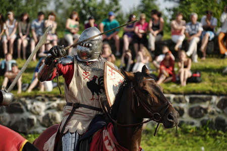 CHORZOW,POLAND, JUNE 9: Medieval knight on horseback during a IV Convention of Christian Knighthood on June 9, 2013, in Chorzow