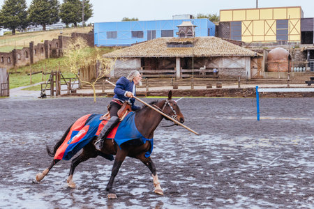Sundby Lolland, Denmark - August 21, 2017 - The medieval knights tournament in The Middle Ages Center, the experimental living history museum.