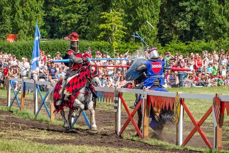 Warsaw, Poland - May 03, 2012 - Knights jousting at the International Festival of historical Reenactment of the Middle Ages - Battle of the Nations.
