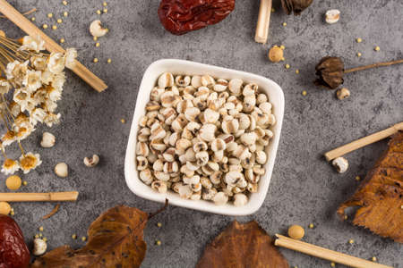 chinese pearl barley on spoon , job