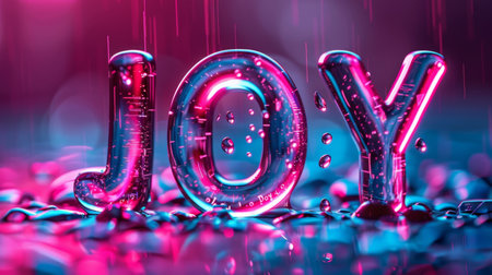 The vibrant word JOOY bursts with energy, crafted from glossy paint that drips and splatters against a soft blue background. This lively composition radiates joy and creativity, inviting viewers to embrace a playful spirit and the beauty of artistic expression.