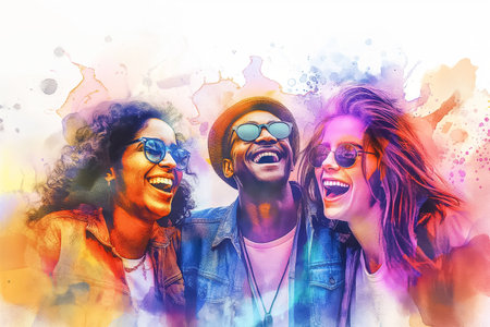 This is a vibrant celebration of friendship that showcases the joy, laughter, and togetherness among friends depicted in a colorful and artistic style
