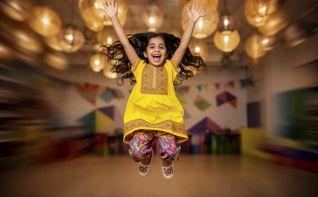 Cheerful child expressing joy and excitement, celebrating a special occasion with enthusiasm