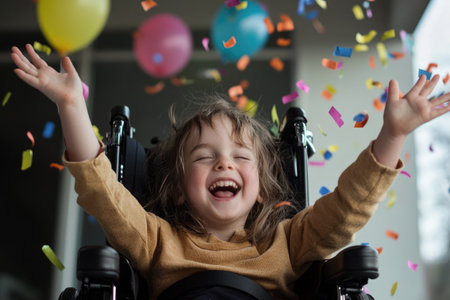 Joyful celebration: child in wheelchair celebrate birthday, a day of happiness and inclusion, love and festivities, every moment is filled with laughter and cherished memories.