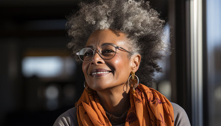 timeless beauty and wisdom of an African senior woman's radiant smile in a close-up face portrait. joy, strength, and resilience that come with age positive aging